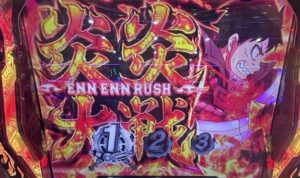 まず、L炎炎ノ消防隊2の有利切り後は炎炎チャンス or 炎炎(紅J)大戦に当選します。