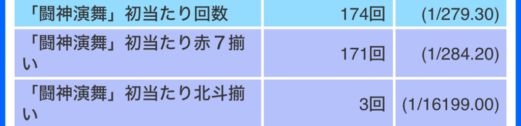 それではまず実践に行く前に僕の北斗揃いの確率です(恩恵はATレベル3以上+特闘)