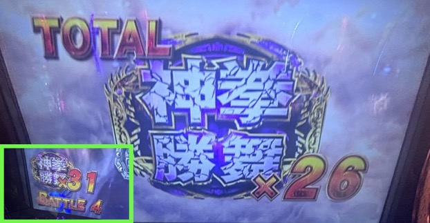 ガシャガシャ言わせながら回していくと576ゾーンでATに当選!オーラは青色だったのですが…