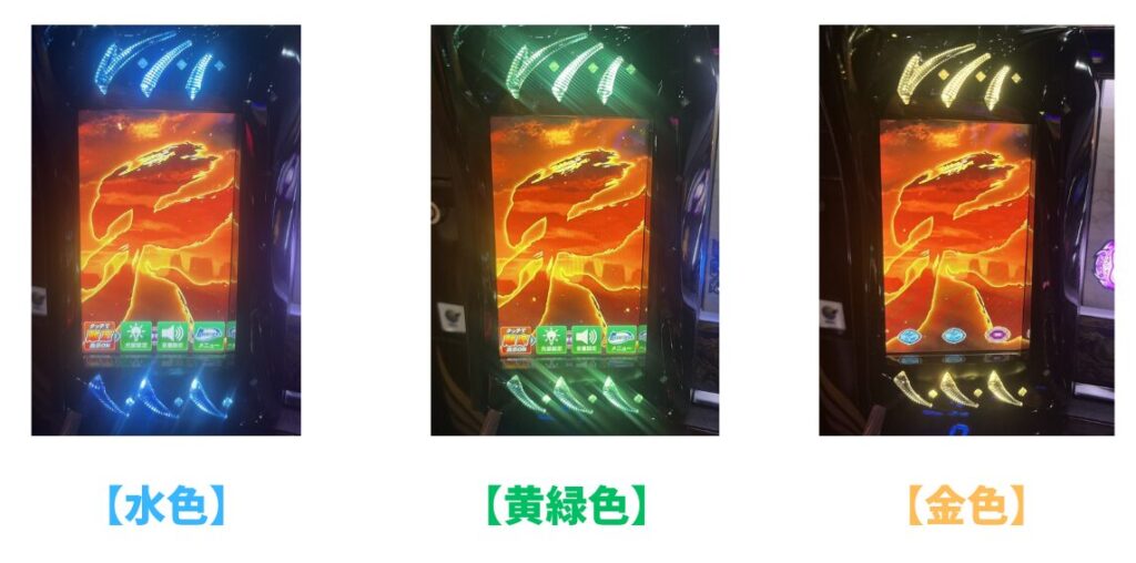 ただし、「水色+上に白が流れる」「水色点滅+上に白が流れる」この2つは強めの示唆なので良く見ておきましょう