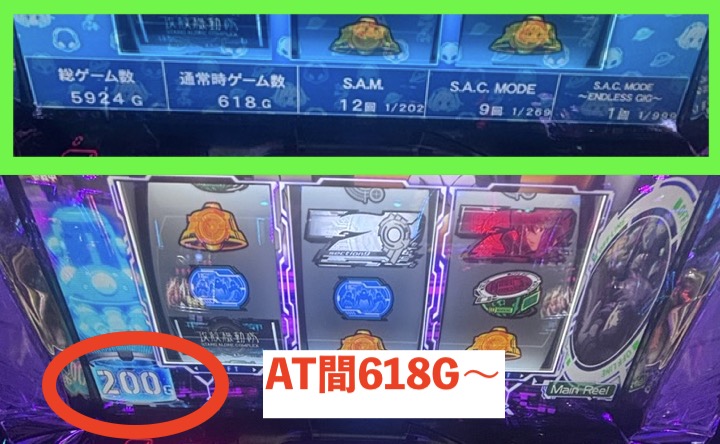 200/400G到達時は上位CZ「タチコマの家出」に当選するチャンス!そこを考慮(妥協)して打ってみることにしました