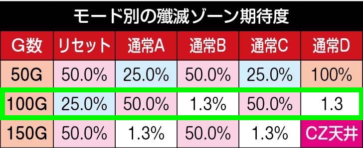 100Gで殲滅ゾーンに入ってしまうと、モードDをほぼ否定するので、モードC以上の示唆が出てない限りはヤメましょう
