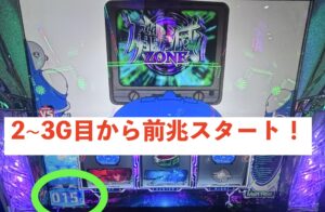 このケースはCZ終了時に即前兆から殲滅ゾーンが出てきます。ただし、即前兆と言っても2~3G回さないと前兆が発生しないので数ゲーム様子を見ましょう