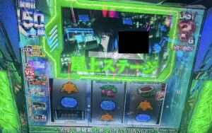 3つ目は裏ボタンについて!通常時77G消化後に左リールを7回押すとAT終了画面の示唆が見れるやつです