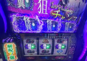 まずはCZに当選!そして中リールのみ怪異図柄止まります