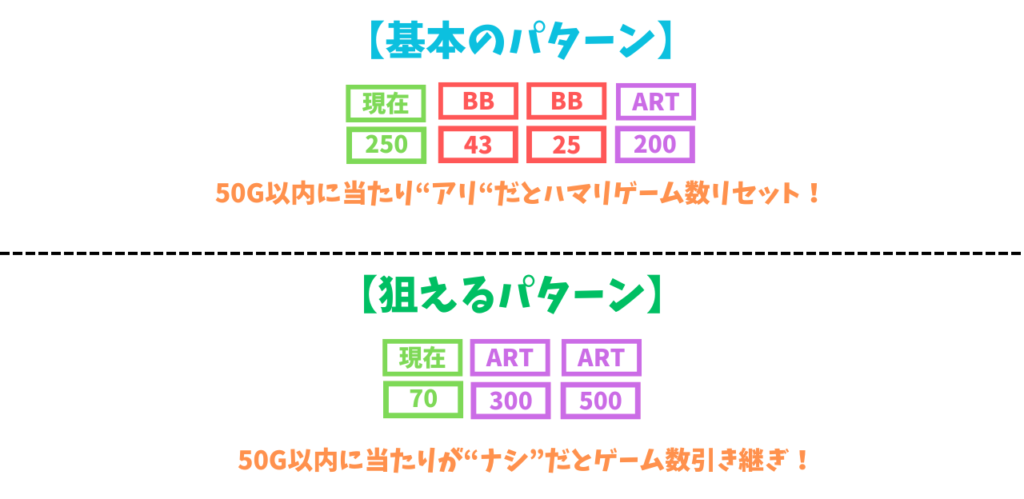 また、連チャンしなかった場合はハマリゲーム数を引き継ぎ!