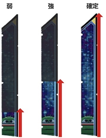 第3停止後に1段階ずつピカっ➡︎ ピカっ ➡︎ ピカピカっ!と光るのを3往復ほど繰り返します