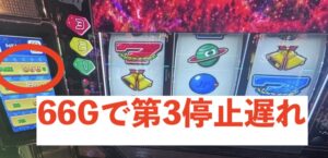 第3停止の遅れ(違和感)があると高確滞在のチャンス!さらに遅れ発生から30G以内に再び遅れると高確滞在濃厚になります