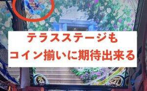 花火ステージに行けばコイン揃い濃厚(?)なので、設定1でも25%でCZに当選。CZをハズしてもテラスステージが落ちるまでフォロー推奨。
