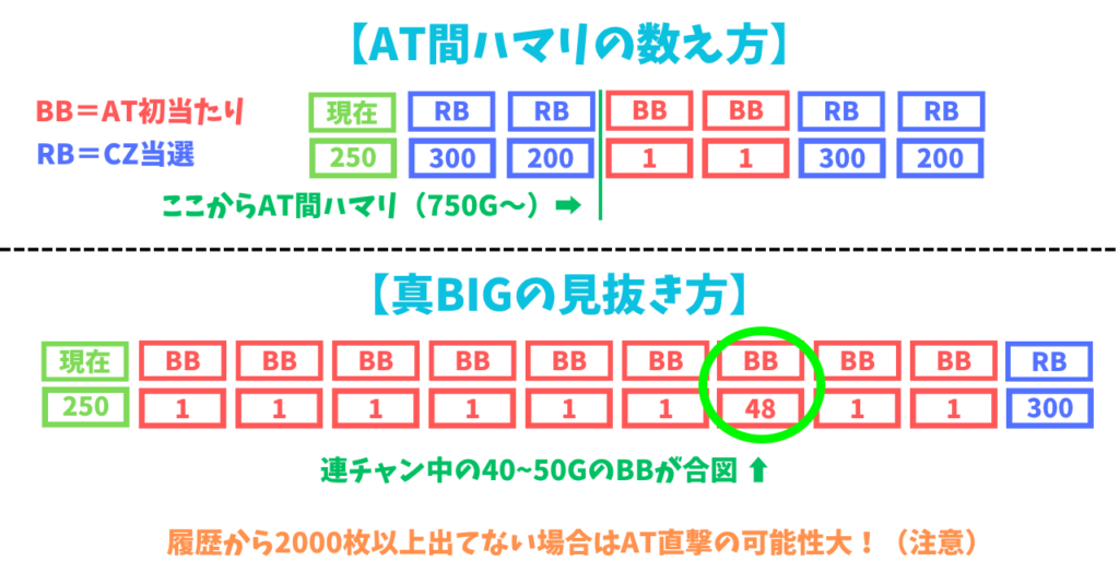 真BIG当選時は40~50GのBB履歴が付くのでそこで判断できます