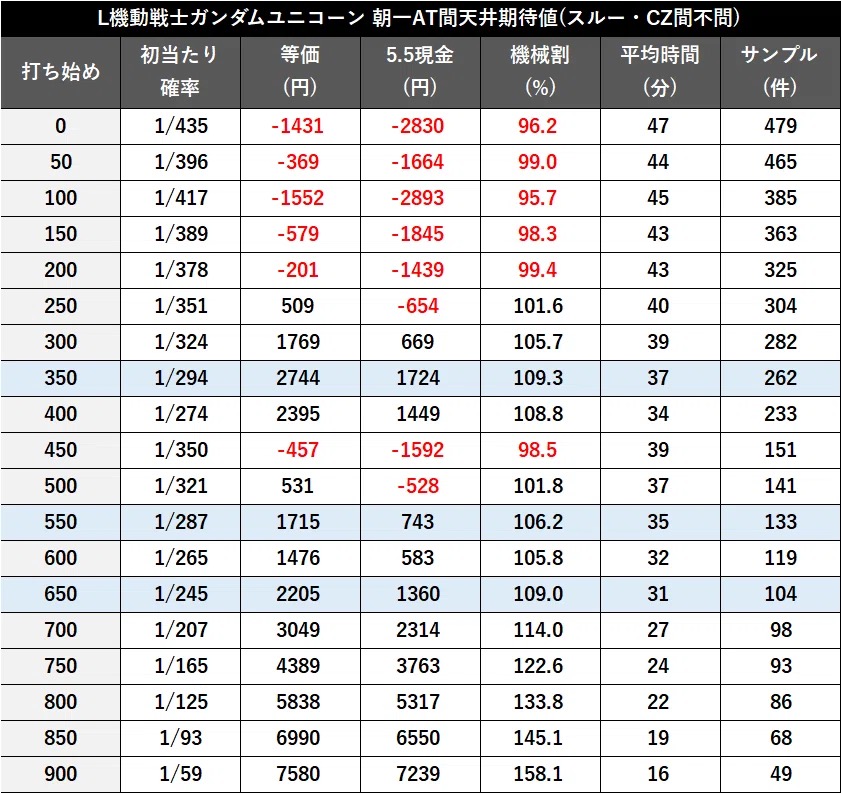 期待値表も400Gまで順調に上がっていますが、CZをスルーしたら一旦ガクンと落ちる感じになってますね🤔