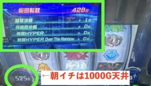 そして朝イチはリセット恩恵があってCZ・AT天井が短縮されています