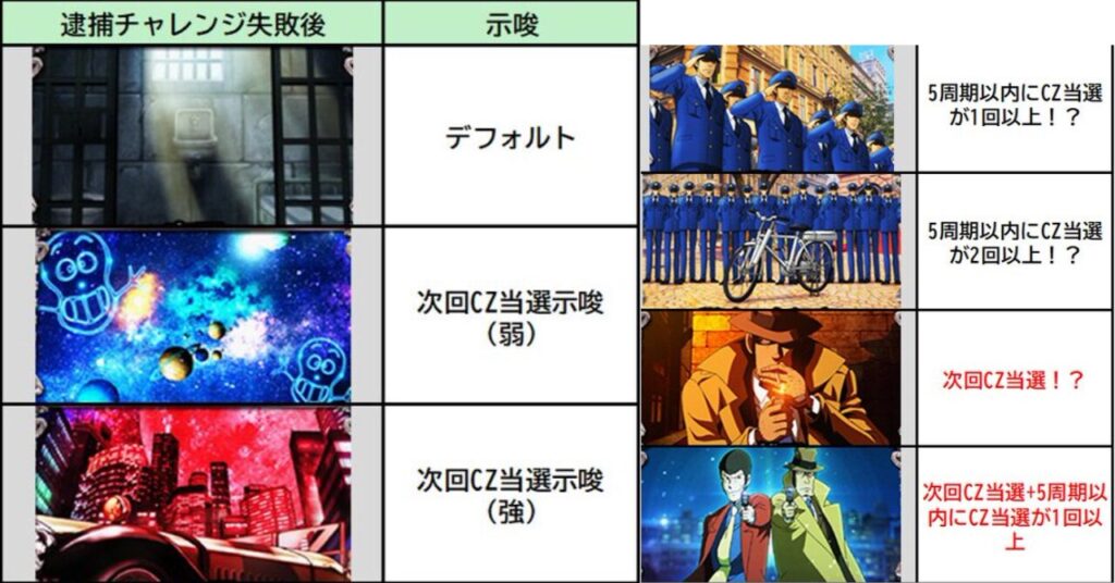 捜査ポイントが0になるとCZを抽選。全設定共通22%でCZに当選します。