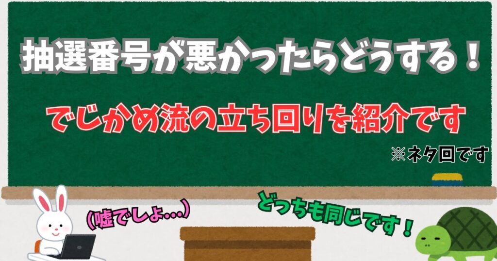 抽選番号が悪い日はどうするのか設定狙い下手の"でじかめ"の立ち回りを紹介!ネタ回ですが、ちょっとは参考になる部分もあると思うので読んでみてね!